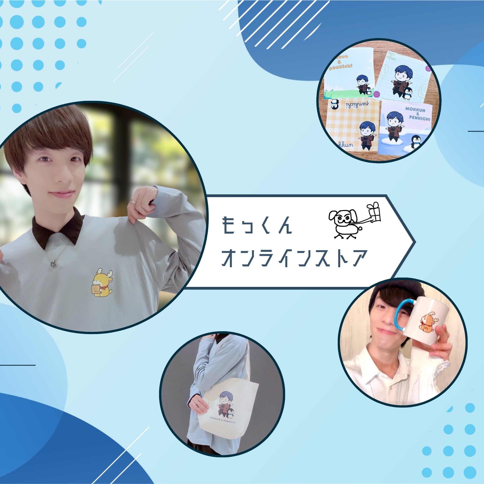 もっくんイラスト等のオリジナルのデザインを取り入れたファッションアイテム。
